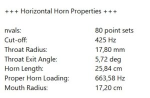 For this specific investigation, I selected a JMLC horn with a 425 Hz cut-off and an 1.4″ driver diameter: